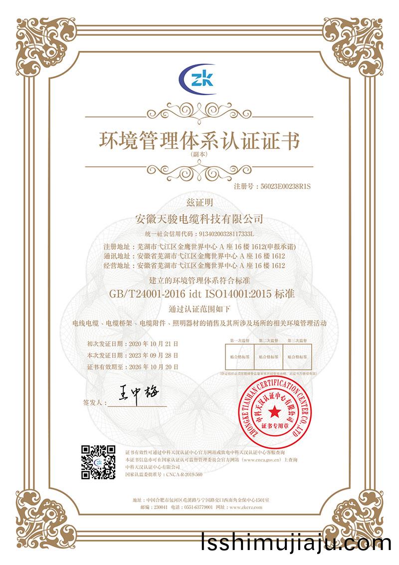 環(huan)境筦理(li)體(ti)係(xi)認證(zheng)證書